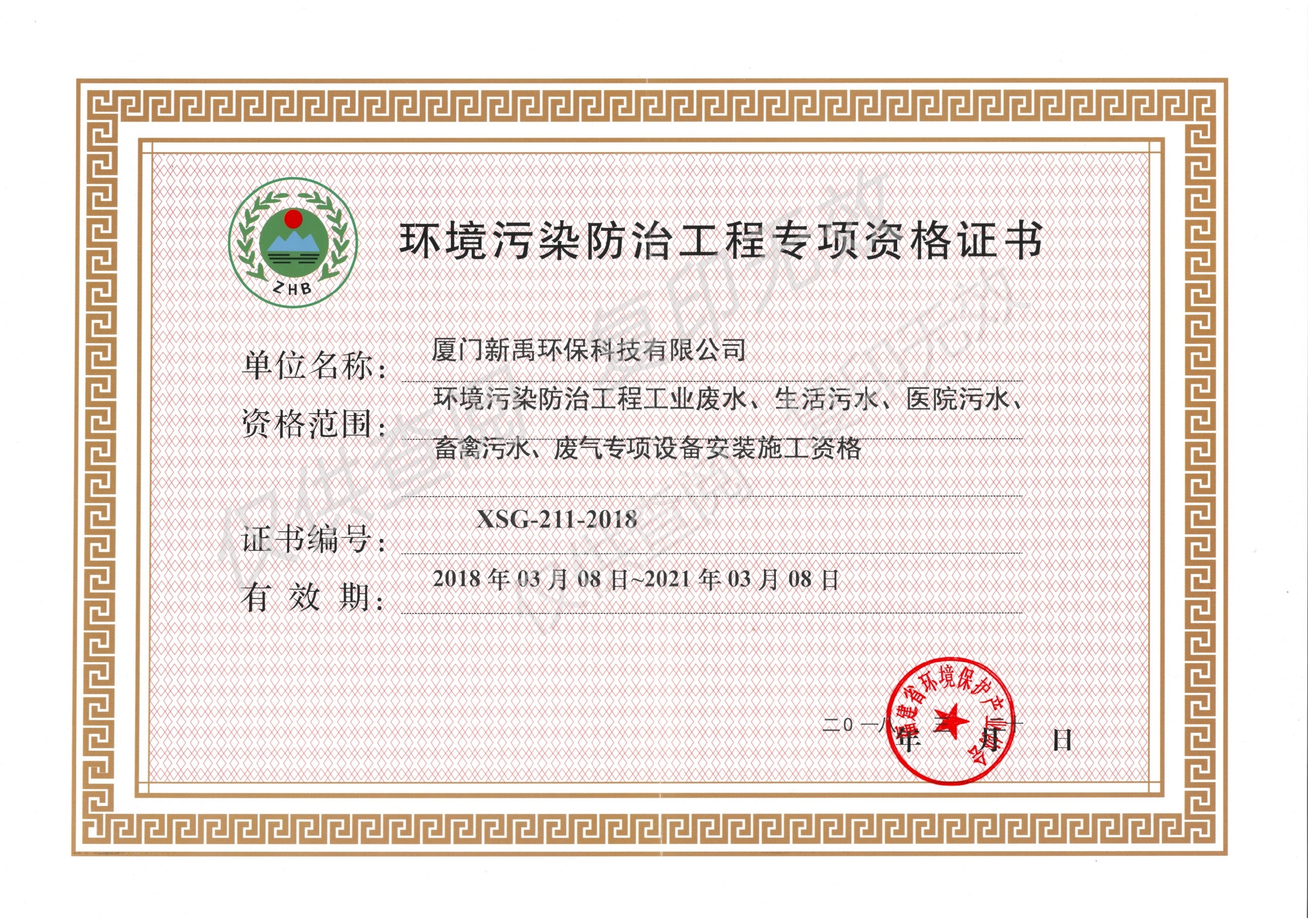 環(huán)境污染防治工程專項(xiàng)資格證書